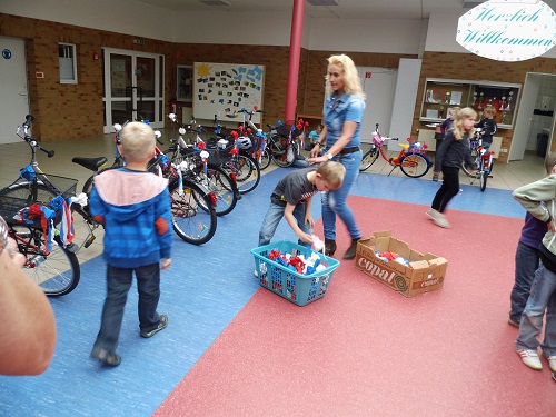 Die Schüler der Grundschule Hengelage bereiteten sich auf das Schützenfest in Hengelage- Brokstreek vor. Zusammen mit einem Vertreter des Schützenvereins und den pädagogischen Mitarbeitern der Grundschule schmückten die Kinder heute in der letzten Stunde ihre Fahrräder für den großen Schützenumzug. Als Überraschung gab es Süßes für die Kleinen.